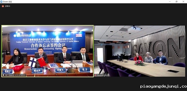2月18日,我校与芬兰萨沃尼亚应用科学大学(Savonia UAS)在线召开会议,签订相关合作备忘录。萨沃尼亚应用科学大学校长梅尔维·维德格林(Mervi Vidgrén)、国际处处长维皮·劳卡宁(Virpi Laukkanen )、国际处教育出口主管郝晨洁等参加会议。我校党委副书记、校长谢永华,党委常委、副校长孙雁飞,国际合作与交流处、国际教育学院相关人员参加会议。