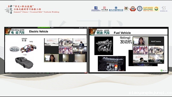 为庆祝第13个联合国中文日,推进职业领域里专门用途中文的学习,实现以中文为切入点,逐渐向其他领域延伸,打造出各类“中文+”项目,为各国培养既懂语言又懂技术的专业人才。2022年4月20日,教育部中外语言交流合作中心、国际中文联盟和我校“中文+职业技能”国际推广基地为国际中文日共同举办了“ 中文+职业技能”立体式教材学习体验工坊活动。活动共分为三个篇章,分别是国际中文日寄语篇章、“中文+职业技能”立体式教材学习体验工坊线上课程篇章和学以致用-汽车实训中心实操篇章。参加活动的200名学员来自柬埔寨柬华理工大学、乌干达鲁扬子理工学院、马来西亚优诺雅中文工坊。