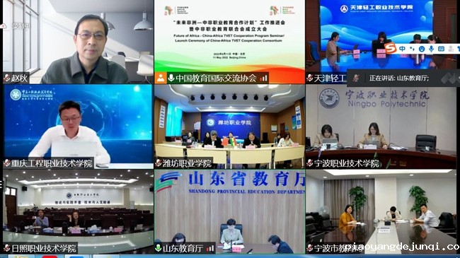 5月11日,“未来非洲—中非职业教育合作计划”工作推进会暨中非职业教育联合会成立大会在线上举行,教育部国际合作与交流司副司长贾鹏,非洲技术与应用型大学与学院协会秘书长扎哈·法勒,中国教育雷竞技JJB协会副秘书长余有根,坦桑尼亚教育科技部职业教育司司长诺埃尔·姆邦德,中国驻埃及大使馆教育公使衔参赞王胜刚,埃及驻华大使馆文化教育参赞乌麦伊麦·迦尼姆,中国驻南非大使馆教育参赞李旭东,中国驻非盟使团政治事务参赞张民敬出席并致辞祝贺。