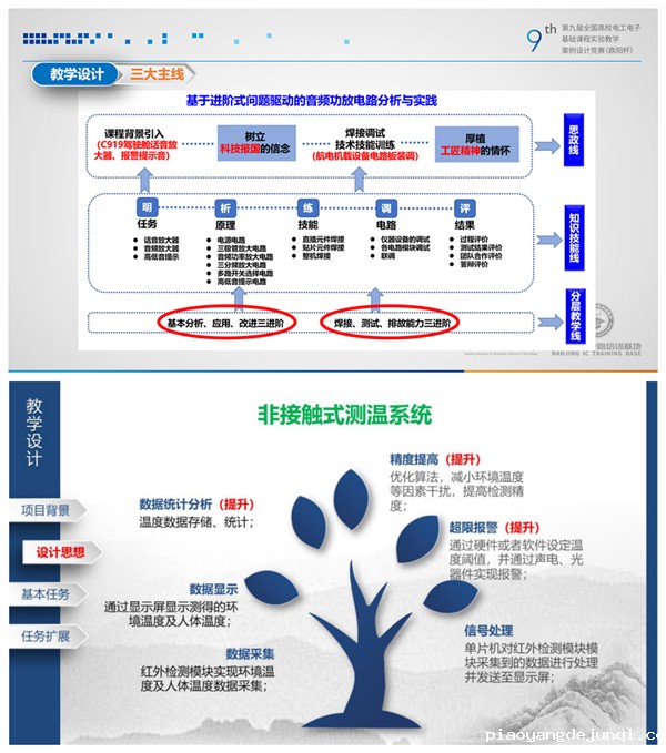 5月19日,第九届“鼎阳杯”全国高校电工电子基础课程实验教学案例设计竞赛华东赛区闭幕式顺利举行,会上公布了本次获奖团队名单。航空工程学院共有三支队伍参加该项比赛,均为首次参赛,其中赵蕾、赵艳启和熊天漪老师参赛的“基于进阶式问题驱动的音频功放电路分析与实践”荣获华东赛区一等奖,王晓彧、李从宏老师参赛的“非接触式测温系统设计”和倪瑛、陆驹老师参赛的“基础电路波形发生器”荣获华东赛区二等奖。