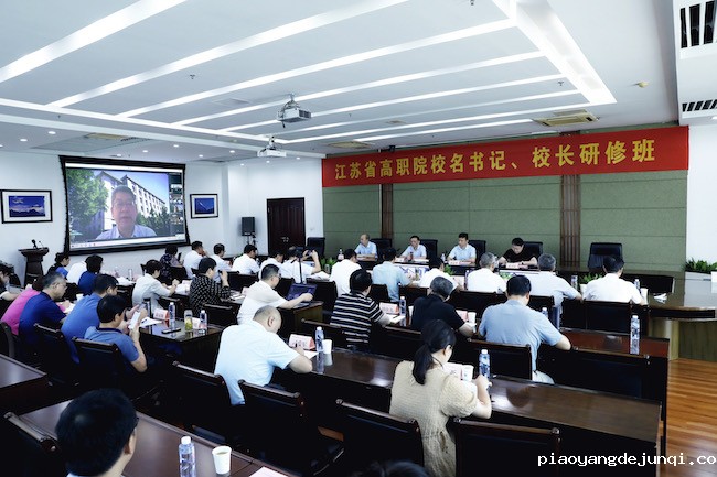 8月12日,“江苏省高职院校名书记、校长教育教学成果培育专题研修班”在我校顺利开班。教育部教师工作司副司长黄小华,江苏省教育厅副厅长、党组成员潘漫,江苏省教育厅教师工作处处长张卫星,学校党委副书记、校长谢永华,党委常委、副校长霍雄飞以及来自江苏省高职院校的30位党委书记、校长出席开班仪式。开班仪式由张卫星处长主持。