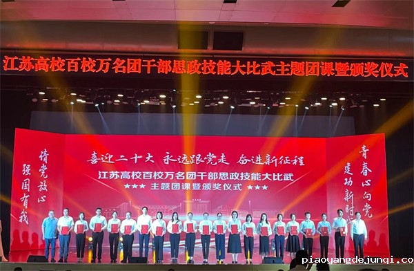 8月31日,由共青团江苏省委、中共江苏省委教育工委、新华日报社与江苏省学生联合会共同主办的江苏高校百校万名团干部思政技能大比武主题团课暨颁奖仪式在江苏大学落下帷幕。学校团委获评“优秀组织奖”,校团委副书记曲鹏在专职团干部专项赛中获特等奖,文化艺术教育中心教师宁伟男在兼挂职团干部和青年教师专项赛中获一等奖,经济管理学院李泽寰在基层团支部书记专项赛中获得二等奖,团委学生兼职副书记窦淼在基层团支部书记专项赛中获得三等奖。