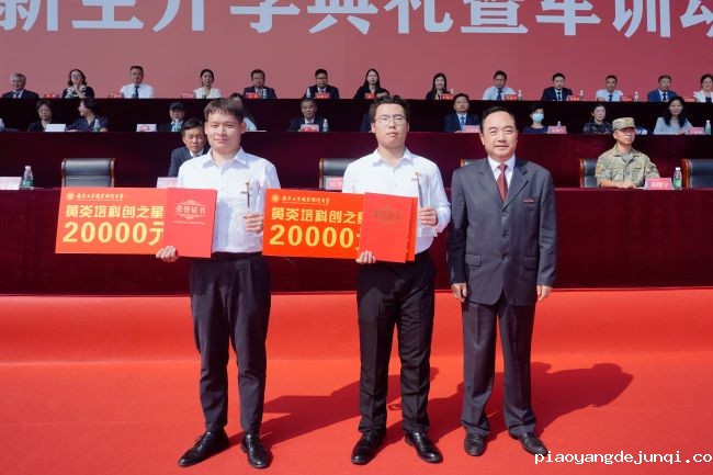 近年来,学校高度重视创新创业教育工作,鼓励学生积极参与创新创业实践,专门设立了“黄炎培科创之星”奖学金,奖励在科技创新活动中表现突出的优秀学子。在典礼仪式上,马成荣宣读了“黄炎培科创之星”表彰决定。吴学敏为“黄炎培科创之星”获得者航空工程学院王丙雷、电气工程学院王顺两位同学颁发了奖牌及证书。