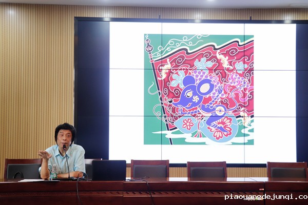 十二生肖云锦图将现场气氛推向了高潮。“鼠图上的纹样,头上是石榴代表多子多福,脚下踩的葫芦意为福禄双至;牛图上的纹样是希望大家牛气冲天,力转乾坤;虎图上的纹样是祝福大家虎虎生风,大富大贵;兔图上的纹样有突飞猛进、一展宏图之意;龙图上的纹样有蛟龙出海,一飞冲天之意;蛇图上的纹样有腾蛇乘雾,八面玲珑之意……”金文一一向同学们细致讲解。他指出,在几千年的历史传承与发展过程中,云锦工艺要传承和发扬光大,必须根植于传统文化,在此基础上贴近生活,不断创新。