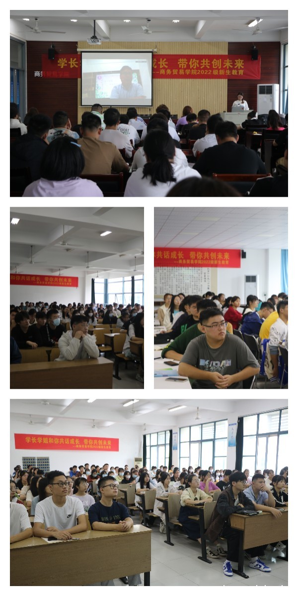 为了帮助新生尽快适应新的学习环境,明确新的发展目标,更快更好地融入大学生活,结合“2022年全国大众创业万众创新活动周”有关安排,9月16日上午,商务贸易学院以“学长学姐和你共话成长 带你共创未来”为主题举办新生教育活动。学院党委书记陈桂兰、党委副书记、院长阮晓文、党委副书记、副院长常敏与2022级新同学和三位优秀校友共聚云端,分享他们在创优、创新、创业方面取得的优异成绩和成长体验。会议由辅导员刘畅主持。