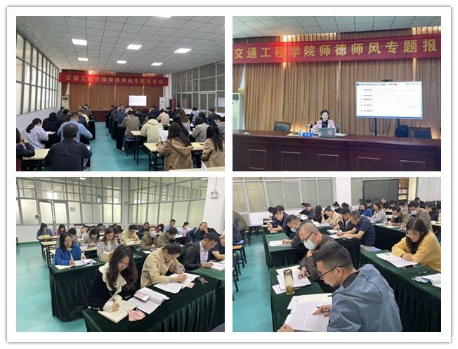 11月9日下午,交通工程学院邀请教师工作部部长张莉来院为全体教职工开展师德师风专题报告。报告会由学院党委书记周昱英主持,学院领导班子成员及全体教师参加。
