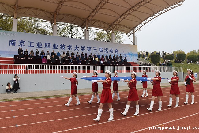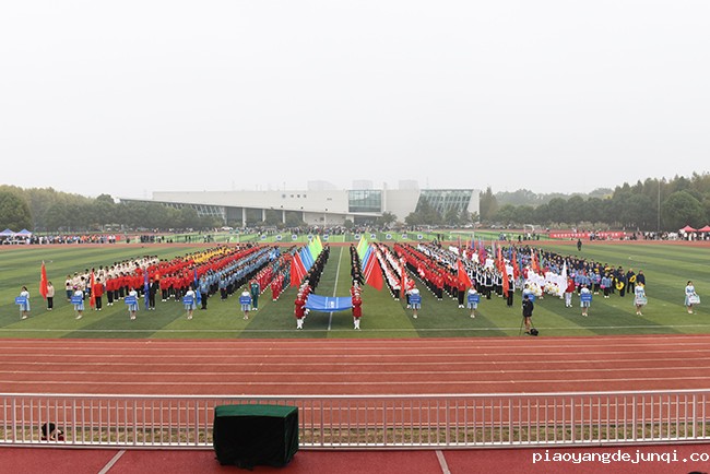 伴着昂扬奋进的《运动员进行曲》,学生代表队、教职工代表队依次入场,精心设计的队形和道具、独具特色的服装、掷地有声的口号和热情自信的笑容,无不散发着青春的蓬勃朝气,现场气氛高涨,观众席传出掌声阵阵。本届运动会学生参赛队伍由587名运动员组成,分别进行24个项目的比赛。除全校学生踊跃参与外,学校19个分工会都派出优秀代表,积极参加教职工趣味运动会及健步走活动。运动员入场后,全场举行了庄严的升国旗仪式。在《义勇军进行曲》的雄壮旋律中,鲜艳的五星红旗冉冉升起,迎风飘扬,全场肃立,向国旗行注目礼。李蒲玲、程德慧和史家伟分别代表裁判员、教职工运动员和学生运动员宣誓。