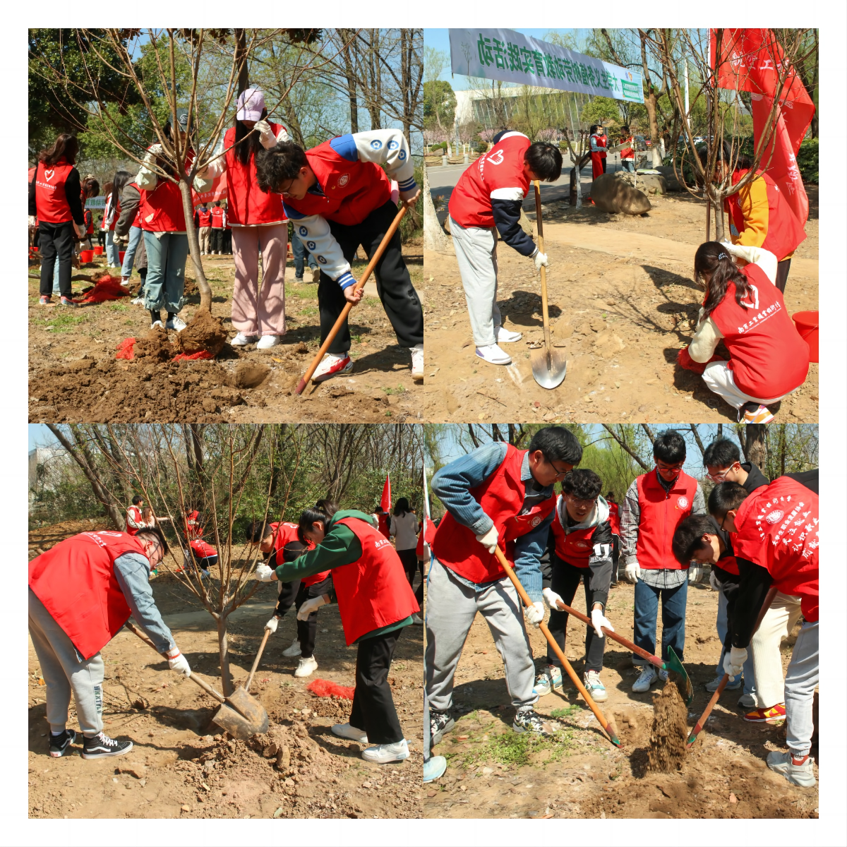 活动现场,师生挥锹铲土、扶树正苗、浇水灌根。志愿者们纷纷表示,植树活动非常有意义,不仅以实际行动收获了一堂最直接、最生动的思想政治课、社会实践课,还提高了思想觉悟和认知能力。作为新时代青年,要弘扬“崇尚劳动、热爱劳动、辛勤劳动、诚实劳动”的劳动精神,争做具有正确劳动价值观和良好劳动品质的时代新人。