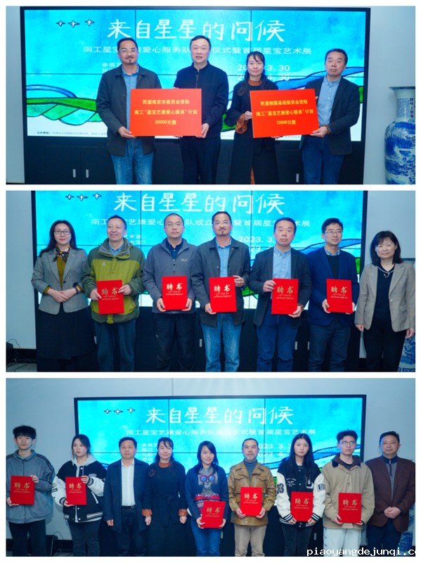 成立仪式上,民盟南京市委副主委邵蔚与学校党委常委,组织部、统战部部长高宏彦共同为“南工星宝艺康爱心服务队”成立揭牌。民盟各级领导为爱心服务队师生颁发了聘书。南工星宝艺康爱心服务队得到了民盟南京市委、栖霞基层委的大力支持,民盟南工支部主委孙静松代表支部接收32000余元资助基金。