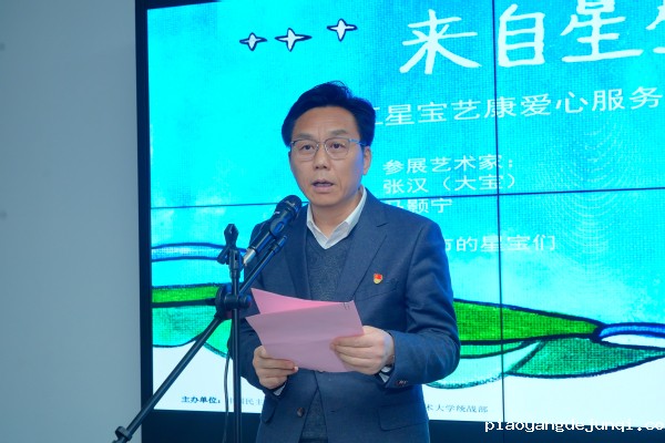 我校党委副书记马成荣向各位领导和嘉宾致辞,他介绍了南工发展历程以及民主同盟会的历史渊源,讲述了我校民盟南工支部组织委员刘圣进老师用自己的爱心、耐心与恒心,帮助多名自闭症孩子运用艺术画笔开启心灵之门、描绘灿烂星空的感人事迹。他高度肯定了民盟南工支部用艺术的方式为孤独症儿童开启心扉,打开交流之门,帮助他们绘就出七彩的人生的举动。马成荣指出,学校将一如既往地大力支持南工星宝艺康爱心服务队的工作,不辜负民盟省委、民盟市委、栖霞区委领导对我们的支持和厚望。
