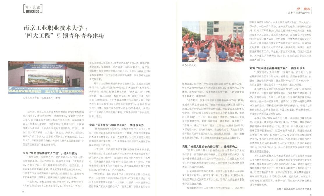 我校报送的《关于完善新型职业领域青年多元化灵活就业群体社会保障的建议》被纳入优秀提案汇编。《csgo直播比赛官方平台:“四大工程”引领青年青春建功》作为高校典型案例(全省共5所)被《风流一代》团代会特刊收录和报道。