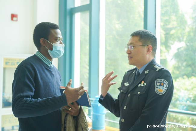 会后,校保卫处副处长(主持工作)包迎华和祝警官就在校外国人管理方面进行了深入的交流研讨。