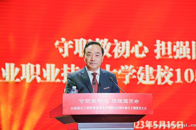 学校党委书记吴学敏结合正在开展的学习贯彻习近平新时代中国特色社会主义思想主题教育,以《新时代,职业教育怎么样办?》为题,为线上线下万余名师生上了一堂生动的思政大课。他表示,南工建校105载,始终不变的是为党育人、为国育才的初心使命,实业报国、光大华夏的家国情怀和以人为本、以例示人的教育追求。站在新的历史起点,他为“新时代,职业教育怎么样办”这一命题给出了答案:一是要把握机遇,将职教报国的赤子情怀,融入到时代改革发展的浪潮中;二是要勇于开拓,将敢为人先的创新精神,镌刻在与新百年发展的同向同行中;三是要追求卓越,将立德树人的初心使命,挥洒于构筑人才培养高地的不懈探索中。