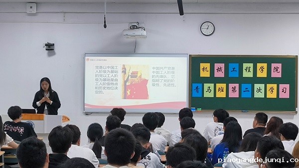 为深入学习贯彻党的二十大精神,加强青年学生骨干培养,提升理论素养、坚定理想信念、增强业务能力,5月30日,机械工程学院邀请了马克思主义学院马忠蕾老师在乐群楼204教室开展了以“我们的党”为主题的讲座,全体青马班成员参加。
