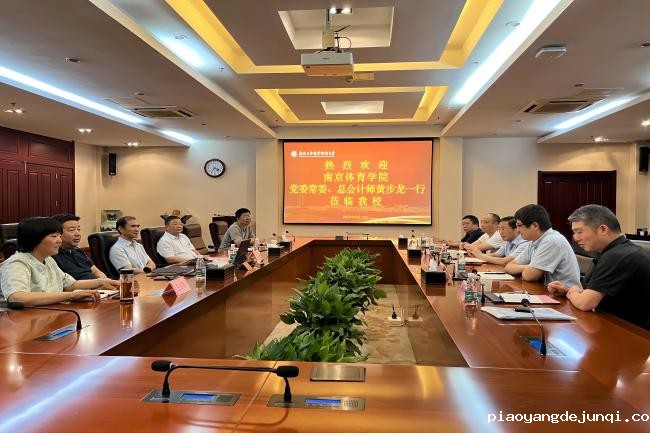 6月15日下午,南京体育学院党委常委、总会计师黄步龙一行来我校考察调研。党委常委、纪委书记、省监委派驻监察专员邱正祥,党委常委、副校长朱建国以及计财处、国资处和后勤中心的负责同志在仙林校区行政楼辅楼一楼会议室接待了来宾。