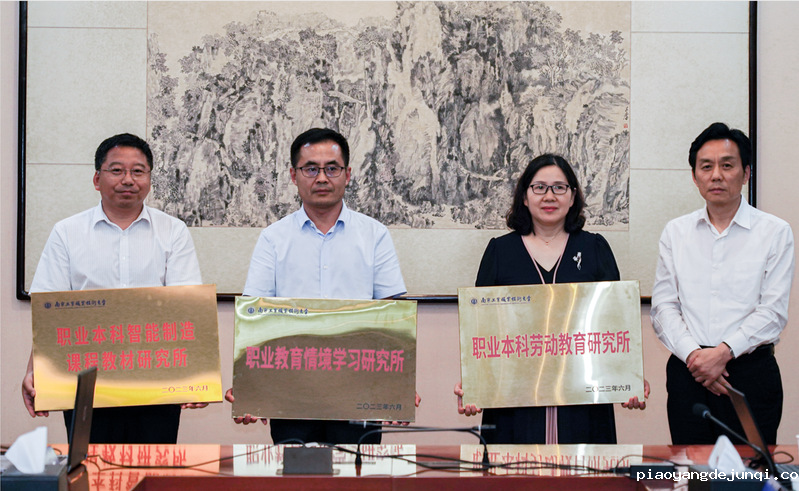 会上,人事处处长张莉宣读了学校成立职业本科智能制造课程教材研究所、职业教育情境学习研究所和职业本科劳动教育研究所的文件,机械工程学院王晓勇教授任职业本科智能制造课程教材研究所所长,计算机与软件学院胡光永教授任职教育情境学习研究所所长,马克思主义学院程德慧教授任职业本科劳动教育研究所所长。马成荣为三个教研所授牌并向各教研所所长颁发聘书;李建国代表本科职业教育研究院与各教研所所长签订年度任务书;三个教研所所长从团队建设、机制建设、资源建设与开发、成果交流与推广分别作表态发言。