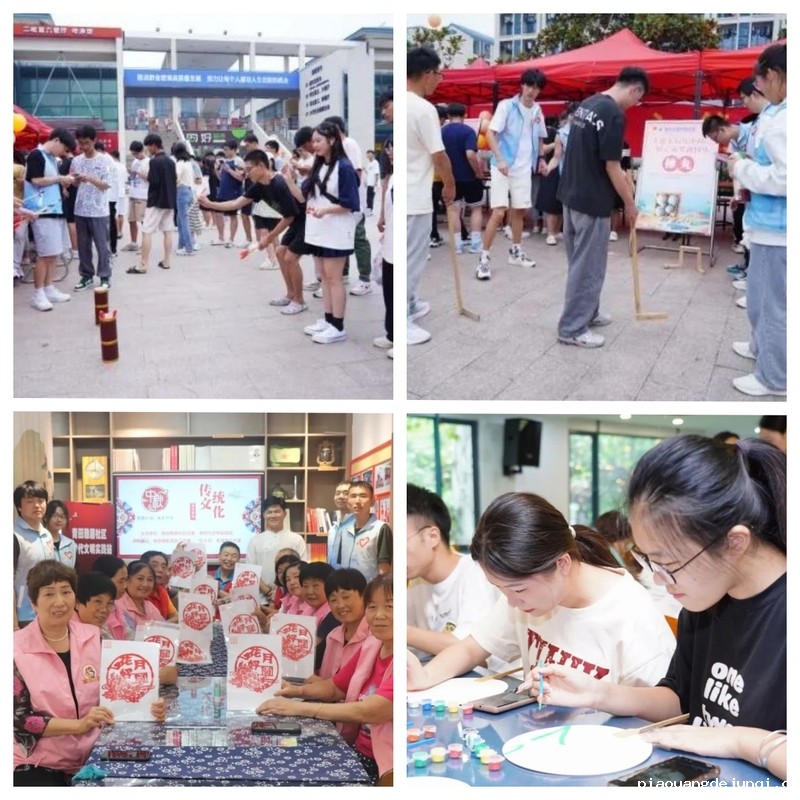 各学院团委、各学生组织也精心谋划,带领同学们度过一个愉快、精彩的假期。由电气工程学院团委、航空工程学院团委、计算机与软件学院团委共同开展的“非遗美韵庆中秋 同心筑梦迎国庆”传统文化游园会活动在四食堂前文化广场开展,花样投壶,考验技巧;欢乐捶丸,展现活力;百变七巧板,拼绘大世界;创新飞花令,玩转古诗词;趣味猜字谜,巧思玲珑心。商务贸易学院团委、经济管理学院团委、交通工程学院团委联合在大学生活动中心四食堂广场举办了“手绘团扇,共庆双节”活动,邀请假期留校的同学们用书写或绘画的方式表达对彼此的美好祝福,制作出独一无二的扇子,共度趣味佳节。计算机与软件学院“e”心助老实践团前往双百共建基地——尧化街道青田雅居社区,在“红十月”老党员活动室给社区老年人们送去一场别有意趣的“巧手剪纸迎中秋 银龄生活有所乐”主题颐老活动。在天堂校区,艺术设计学院开展“我在南工迎国庆”海报摄影展 、“重温红色记忆,汲取智慧力量” 观影活动,激发广大师生爱党、爱国热情,用最美的影像描绘在南工共度佳节的温馨画面。学生社团团总支在体育场开展了趣味游园会,踢毽子、呼啦圈 、投壶、跳绳,号召同学们一齐强生健体。