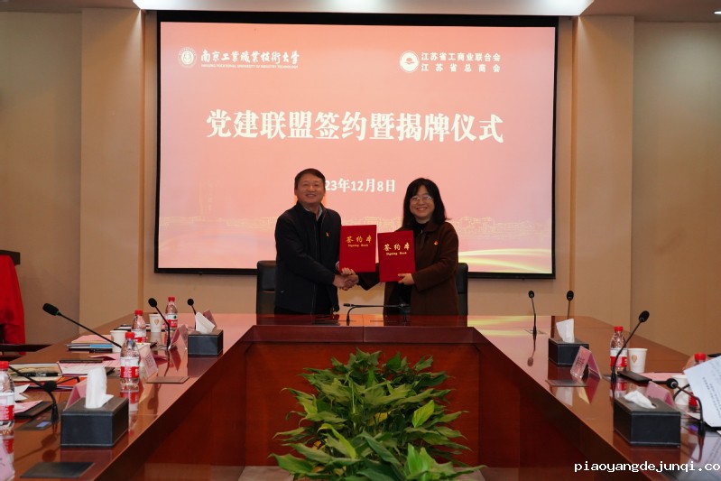 12月8日下午,我校党委与江苏省总商会党委在仙林校区举行党建联盟签约暨揭牌仪式。江苏省工商联二级巡视员李晓东、我校党委书记吴学敏出席签约仪式并共同揭牌。