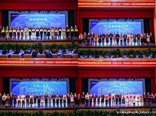 本次大赛由江苏省教育厅主办、扬州大学承办,以“筑梦青春志在四方 规划启航职引未来”为主题,分成长赛道、就业赛道两个赛道,各分设高教组和职教组两个组别,来自全省各高校的123名选手参赛,经现场陈述、评委提问(综合面试)、天降(实习)offer等多个环节角逐,最终产生20个金奖,40个银奖,63个铜奖。