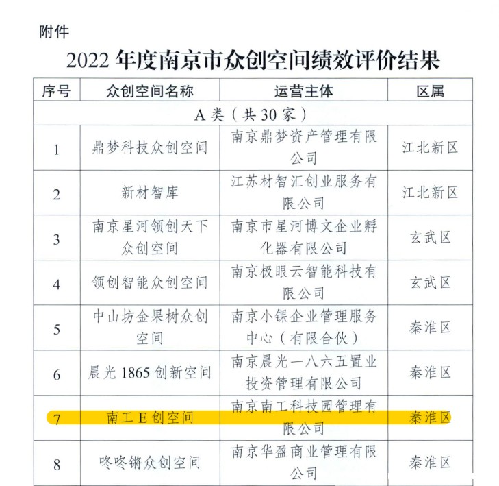 南工E创空间获评南京市2022年度众创空间绩效评价“优秀(A类)”