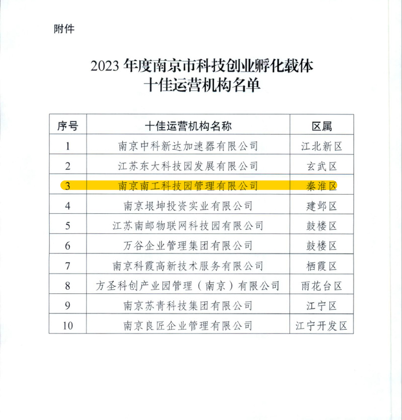 近期,南京市高新技术企业认定管理工作协调小组办公室发布了《关于公布2023年度南京市科技创业孵化载体十佳运营机构名单的通知》(宁高企协办〔2023〕43号),我校科技园管理公司名列其中。