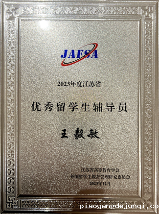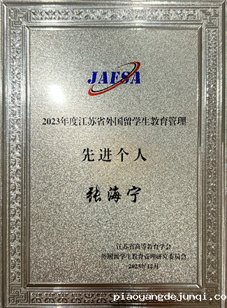 2023年度江苏省外国留学生教育管理先进个人、江苏省优秀留学生辅导员荣誉奖牌