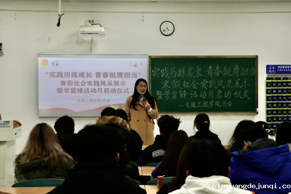 为深入学习宣传贯彻党的二十大精神,贯彻落实习近平总书记关于青年工作的重要思想,深化实践育人成效,发挥优秀社会实践活动示范引领作用,鼓励同学们积极投身实践,交通工程学院团委于3月1日中午12:20在乐群楼202开展寒假社会实践风采展示暨雷锋月活动启动仪式,学院团委书记周嵘、院青马班成员和各实践团队学生出席了此次活动。