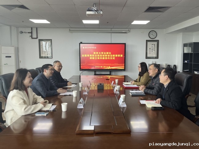 3月26日上午,南京大学出版社总编辑石磊、编辑部主任吴志雄、编辑部副主任冯霞映天一行来我校洽谈课题立项共建事宜。我校党委常委、副校长潘旭海,创新创业学院班子成员在行政楼401会议室参与接待。签约仪式由创新创业学院直属党支部书记、院长纪海波主持。