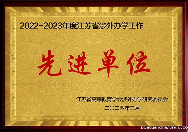 “2022-2023年度江苏省涉外办学工作先进单位”牌匾