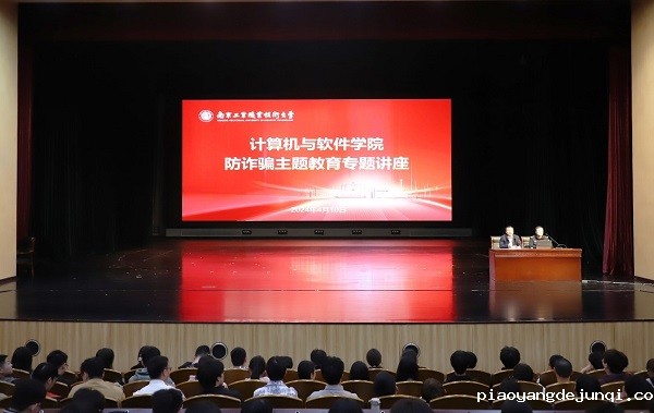 为进一步增强学生的法制意识,使广大学生进一步认清电信诈骗犯罪的本质和手段、切实提升反诈防骗意识和能力。4月10日晚6时在大学生创新发展中心礼堂,计算机与软件学院邀请了南京市公安局内保支队校园大队警官朱楠作防范电信诈骗主题教育讲座。全体辅导员和2023级、2022级、2021级学生代表共600余人参加了本次专题教育讲座。讲座由学院党委副书记、副院长张振峰主持。