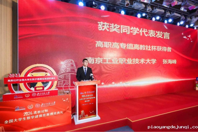 12月6日,由中国工业与应用数学学会主办,全国大学生数学建模竞赛组委会和北京师范大学承办的2024年全国大学生数学建模竞赛颁奖典礼在北京师范大学隆重举行。全国大学生数学建模竞赛组委会主任、中国科协副主席袁亚湘院士,中国工业与应用数学学会理事长、武汉大学校长张平文院士,中科院严加安院士、郑志明院士,高等教育出版社党委书记社长刘超,北京师范大学副校长汪明,北京市教委等领导和专家参会。我校“高教社杯”获奖团队受邀参会,袁亚湘院士和刘超社长共同为我校获奖团队颁奖。团队成员张海峰同学在典礼上发表获奖感言,葛梦忆、曹祖铉同学作团队报告。