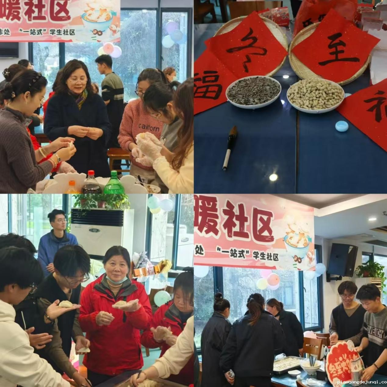 为传承中华传统美食文化,增强师生之间交流互动,切实强化劳动教育工作的时效性、实践性和趣味性,学生社区自治会联合物业管理公司于12月19日在学校第七餐厅举办了“冬至有约,情暖社区——冬至共团圆”活动。校党委常委、副校长魏萍,校党委常委、党委宣传部部长刘畅,学生工作处相关同志,学生社区管理人员以及学生代表50余人共同参加活动。