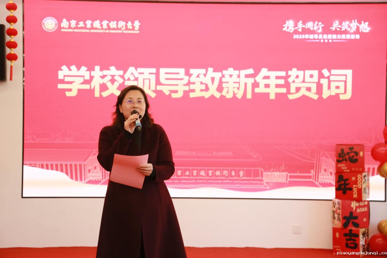 魏萍充分肯定2024年学生工作取得的成绩,并对全体辅导员提出期望:一是要能共同推动政策落地,让制度成为工作的有力支撑;二是要保持终身学习的热情,积累宝贵经验,提升工作效能;三是要牢牢坚守安全底线,时刻贴近学生生活,打造“全国领军、世界一流”职业技术大学的宏伟蓝图,她鼓励学生工作队伍的老师们勇担使命,绽放光芒,共同谱写学校发展的壮丽篇章!最后,魏萍向全体辅导员送上了新年的美好祝福。