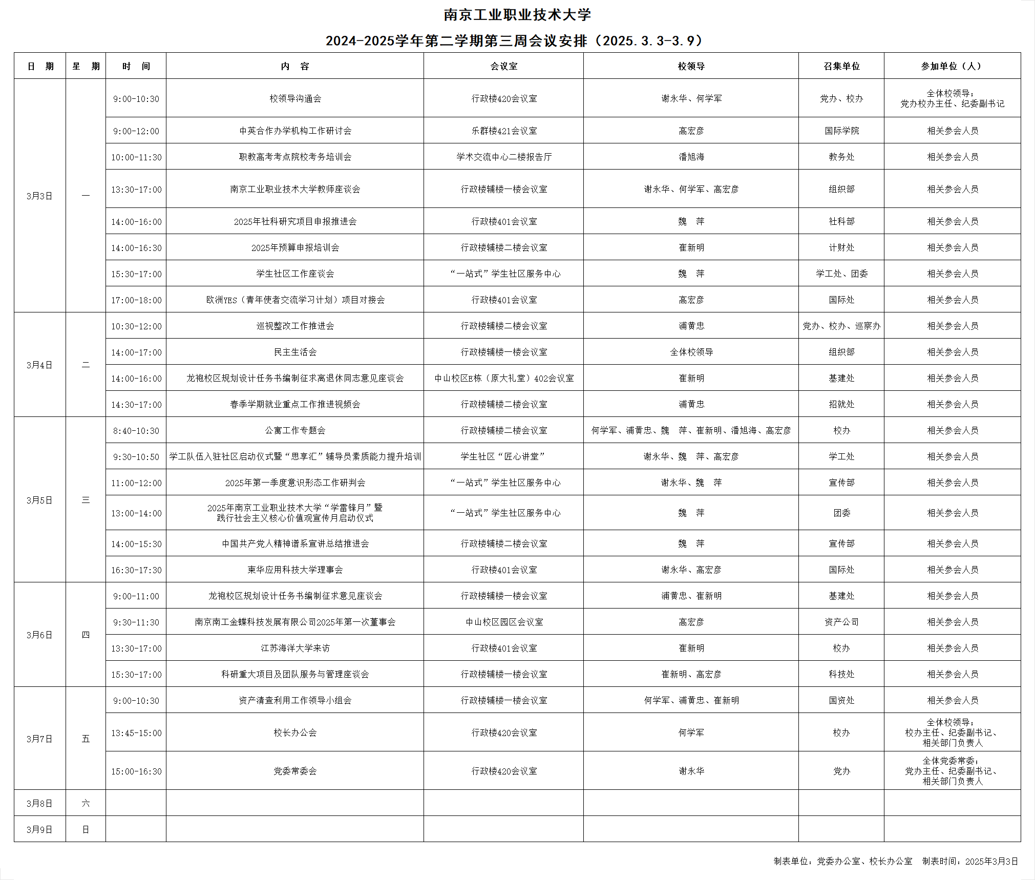 2024-2025学年第二学期第三周会议安排(2025.3.3-3.9)