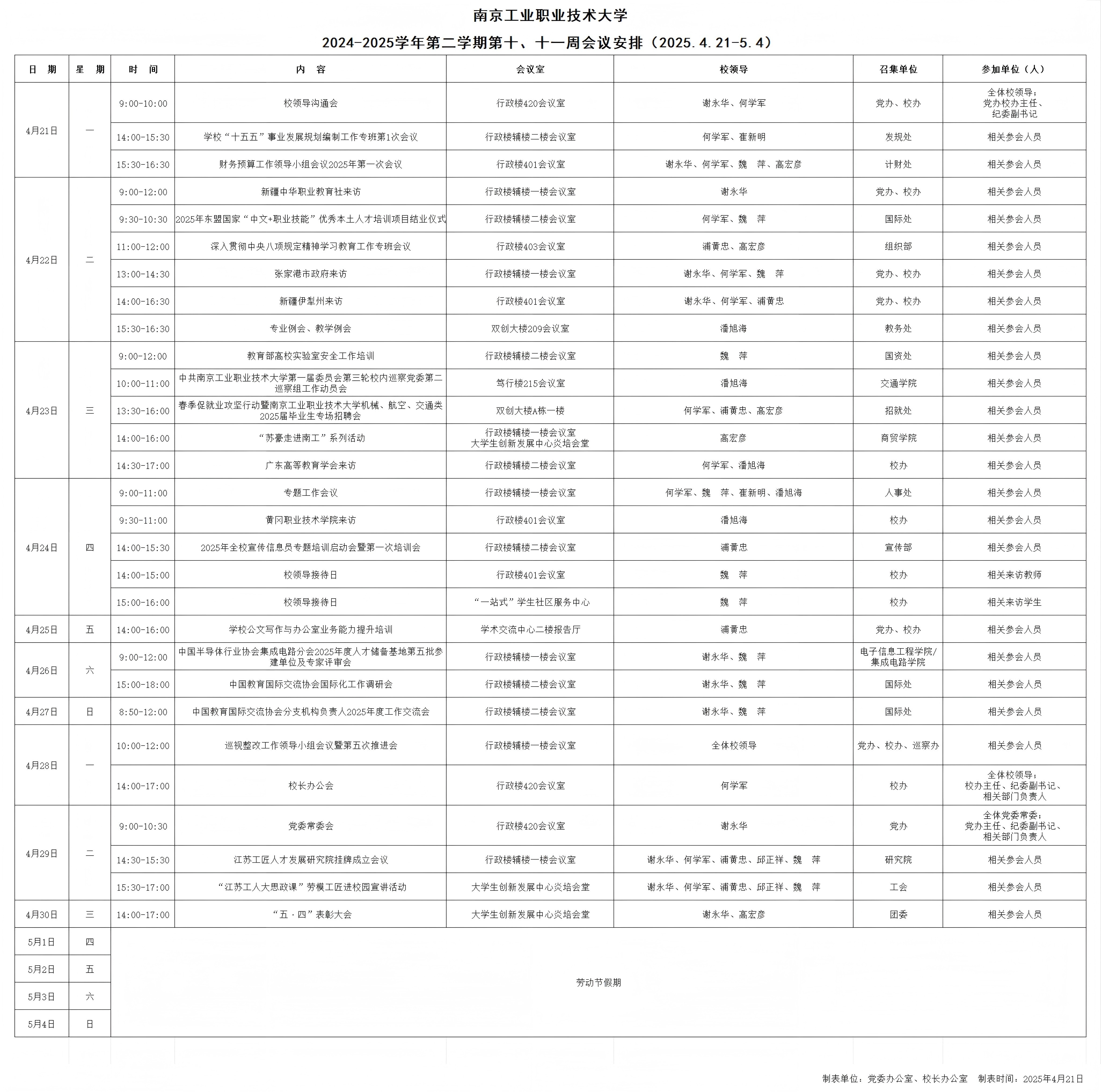 2024-2025学年第二学期第十、十一周会议安排(2025.4.21-5.4)