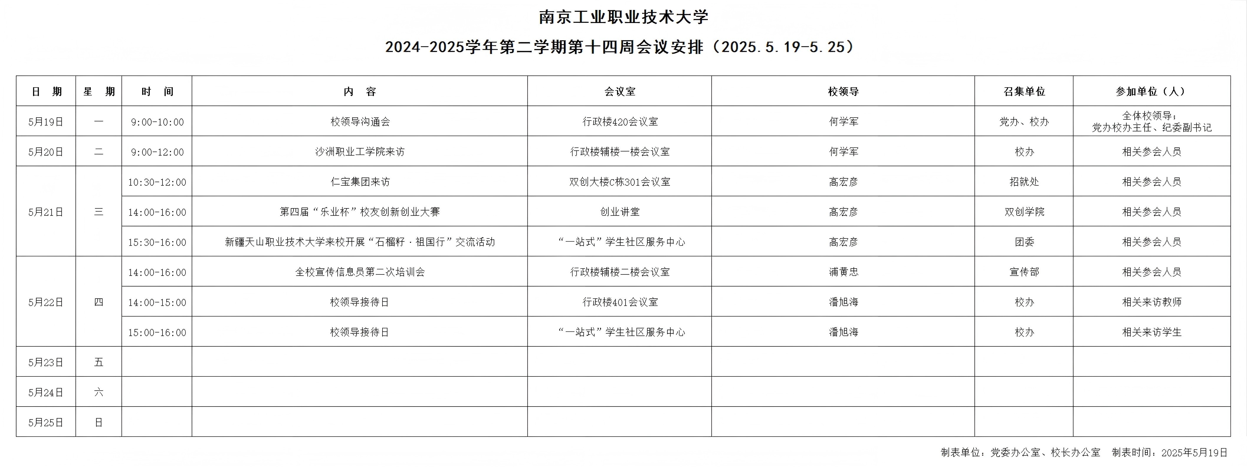 2024-2025学年第二学期第十四周会议安排(2025.5.19-5.25)