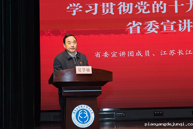 根据省委统一部署,学习贯彻党的十九届五中全会精神江苏省委宣讲团11月23日上午在我校宣讲党的十九届五中全会精神。省委宣讲团成员、江苏长江经济带研究院院长成长春教授作专题宣讲报告。学校领导班子成员,全体中层干部,机关全体教职工,辅导员,思政课教师,学校各级单位宣传员、信息员,学生干部和青年马克思主义者培训班成员代表等350余人在大学生创新发展中心礼堂共同聆听报告。宣讲会由党委书记吴学敏主持。