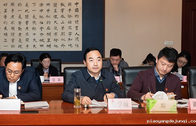 校党委书记吴学敏汇报学校党史学习教育开展情况。党史学习教育开展以来,校党委深入学习领会习近平总书记在党史学习教育动员大会上的重要讲话精神,扎实推进党史学习教育,近期部署推进了多项重点工作:召开动员大会,成立组织机构;制定工作方案,明确目标任务;党委率先垂范,放样子做表率;开展专题宣讲,营造学习氛围;结合部门实际,形成工作特色。下一阶段,学校党委将在前期学习的基础上,进一步围绕学党史、悟思想、办实事、开新局的要求,把学习教育引向深入,做到规定动作不走样,自选动作有特色,学习教育见实效。