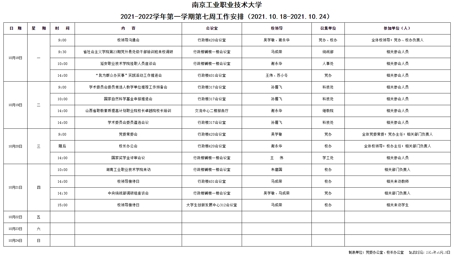 2021-2022学年第一学期第七周工作安排(2021.10.18-2021.10.24)