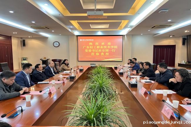 3月20日上午,广东轻工职业技术学院党委书记杜安国一行来我校考察调研。党委书记吴学敏,党委常委、副校长霍雄飞以及党委办公室、校长办公室、学工处、国资处等相关部门负责同志在仙林校区行政楼辅楼一楼会议室接待了来宾。