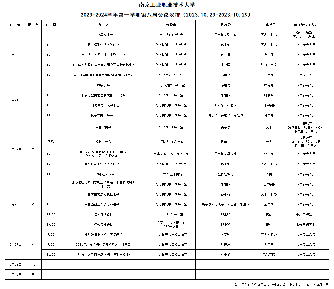 2023-2024学年第一学期第八周会议安排(2023.10.23-2023.10.29)