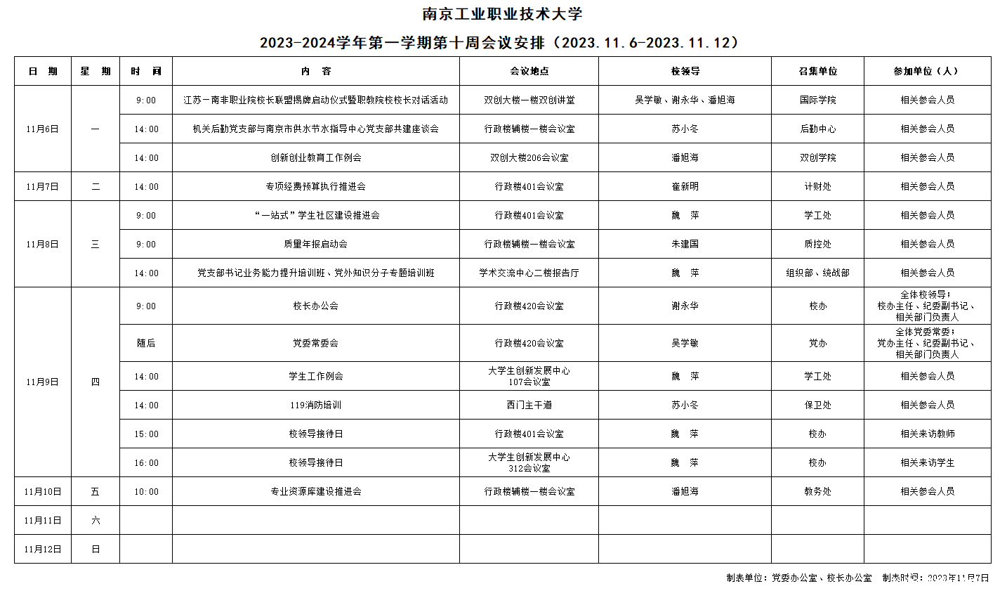 2023-2024学年第一学期第十周会议安排(2023.11.6-2023.11.12)