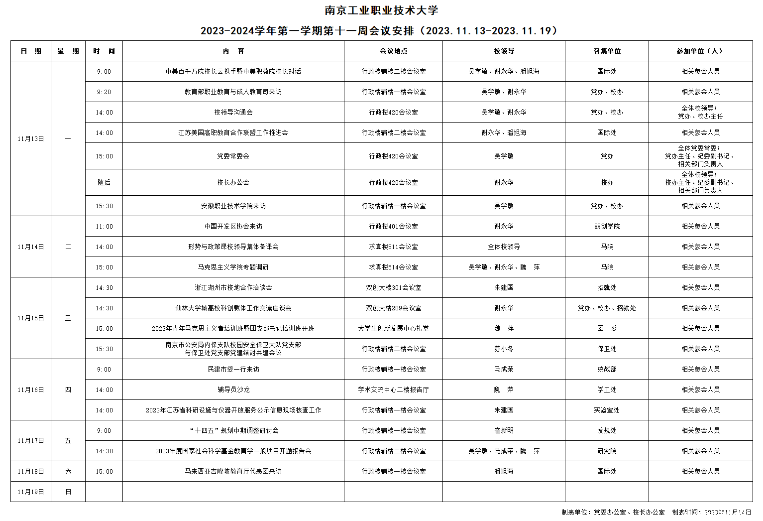 2023-2024学年第一学期第十一周会议安排(2023.11.13-2023.11.19)