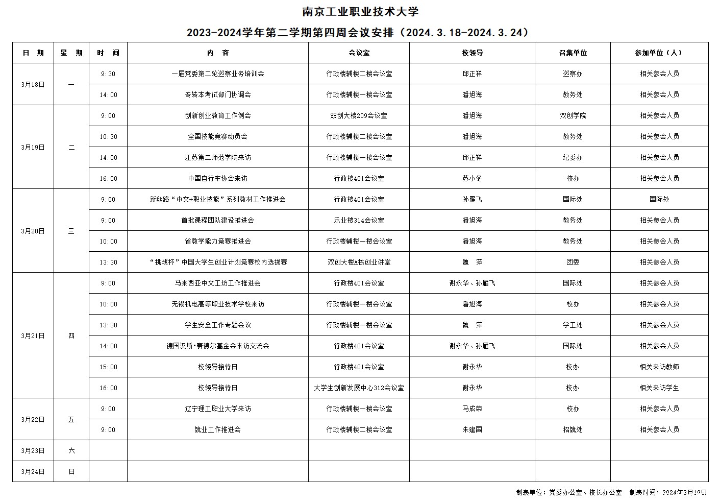 2023-2024学年第二学期第四周会议安排(2024.3.18-2024.3.24)