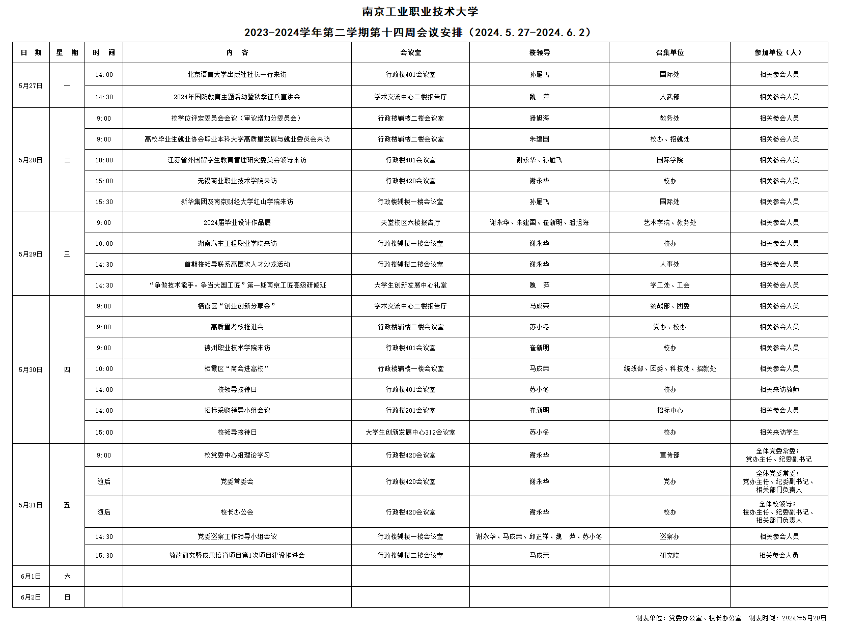 2023-2024学年第二学期第十四周会议安排(2024.5.27-2024.6.2)