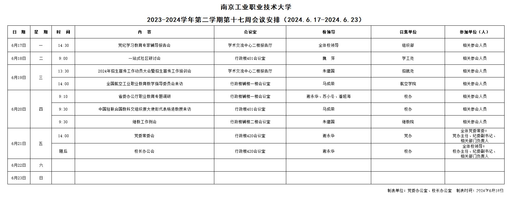 2023-2024学年第二学期第十七周会议安排(2024.6.17-2024.6.23)