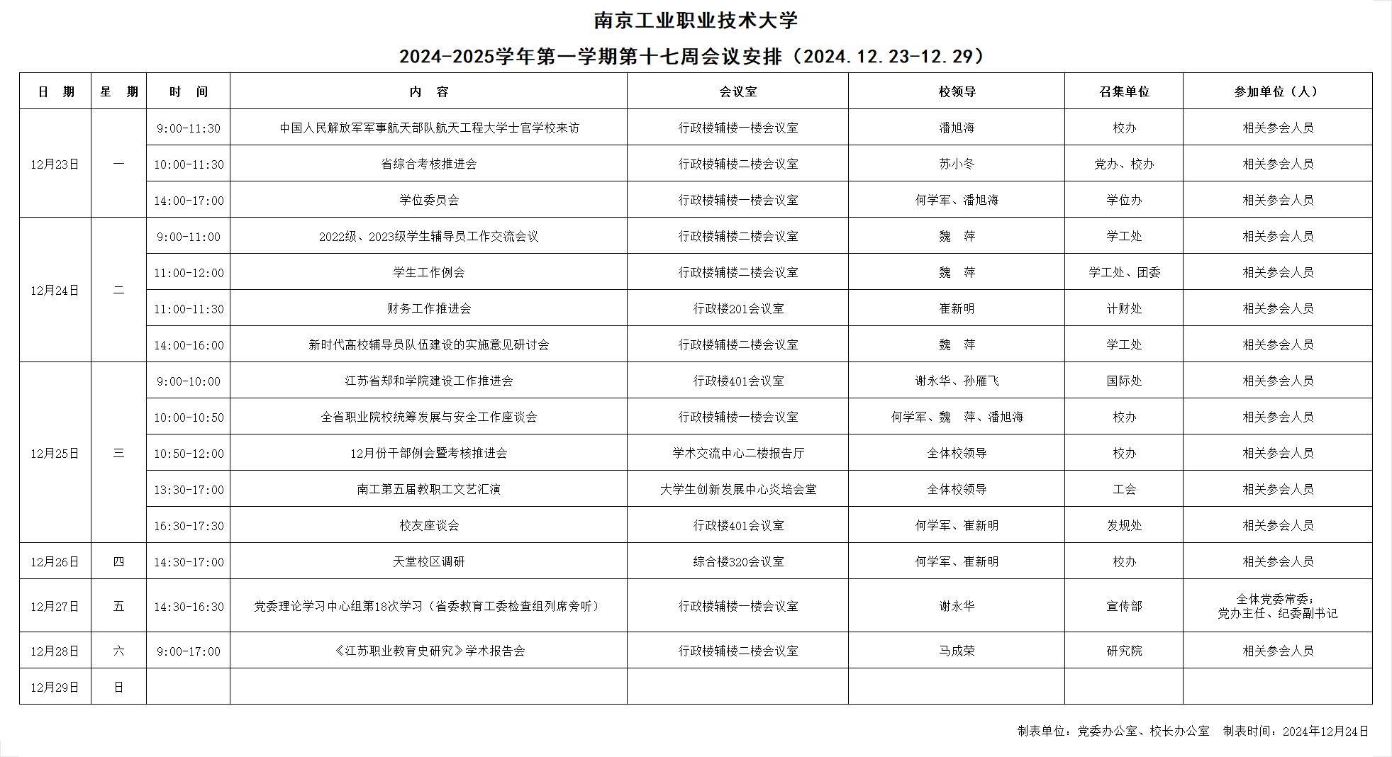 2024-2025学年第一学期第十七周会议安排(2024.12.23-12.29)