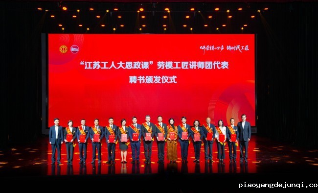 活动中,魏国强和刘月科为从北京载誉归来的14位劳模先进颁发“江苏工人大思政课”劳模工匠讲师团讲师聘书。全国劳模、大国工匠培育对象、启东中远海运海洋工程有限公司海工与新能源研发中心电气室主任黄剑宣读了《紧跟核心坚定前行立足岗位建功立业——江苏省2025年全国劳动模范和先进工作者倡议书》。