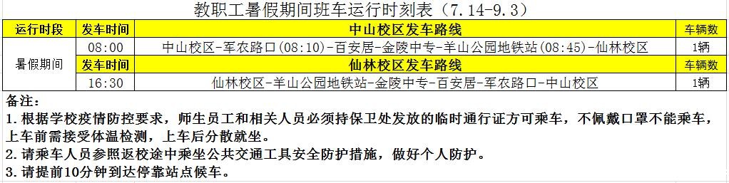 暑假期间班车运行时刻表(7.14-9.3)