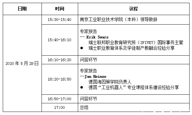 围绕“新起点 再出发”的校庆主题,我校将于2020年5月29日15:30-17:00举办“中欧职业技术教育高峰云论坛”活动。论坛邀请了瑞士联邦职业教育研究所(SFIVET)国际事务主管Erik Swars先生介绍瑞士职业教育体系及学徒制产教融合经验;邀请了德国海因策学院负责人Jan Heinze先生分享德国双元制课程体系建设(详见附件:专家简介)。